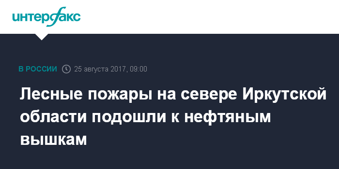Как уточнили "Интерфаксу" в министерстве лесного комплекса Иркутской области, угрозы распространения огня на поселки и нефтяные вышки нет. Пожарные работают, чтобы не допустить ее возникновения.
