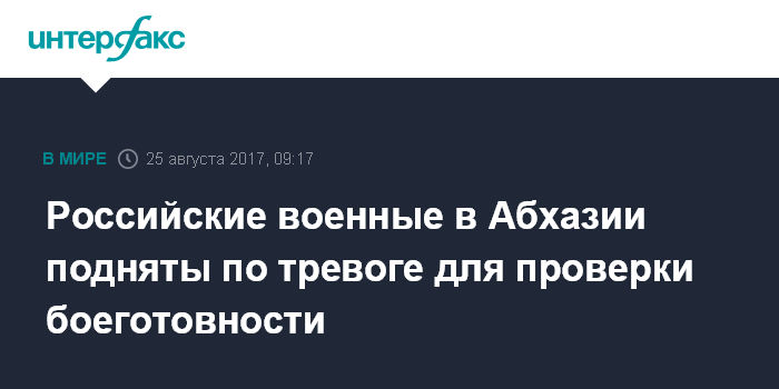 Москва. 25 августа. INTERFAX.RU - Подразделения российской военной базы Южного военного округа (ЮВО) в Абхазии в рамках проведения тренировки по боевой готовности были подняты по тревоге, сообщил в пятницу "Интерфаксу" начальник пресс-службы ЮВО полковник Вадим Астафьев.
