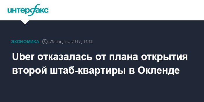Uber отказалась от плана открытия второй штаб-квартиры в Окленде