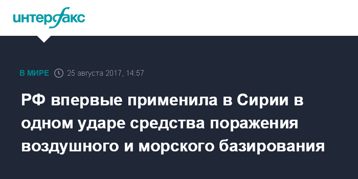РФ впервые применила в Сирии в одном ударе средства поражения воздушного и морского базирования