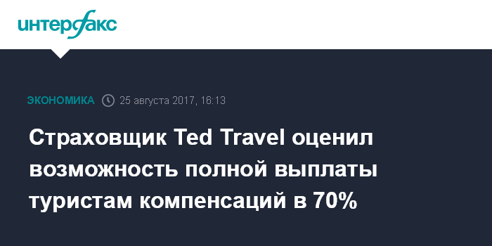 Страховщик Ted Travel оценил возможность полной выплаты туристам компенсаций в 70%