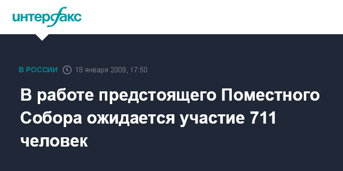 Москва. 18 января. INTERFAX.RU - В работе Поместного Собора Русской православной церкви, на котором будет избран новый патриарх, ожидается участие 711 человек.