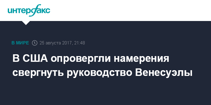 Москва. 25 августа. INTERFAX.RU - Глава Минфина США Стивен Мнучин заявил в пятницу на брифинге в Белом доме, что цель политики Вашингтона в отношении Венесуэлы состоит не в свержении нынешней власти, а в возвращении демократии.