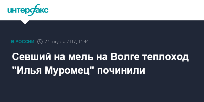 Москва. 27 августа. INTERFAX.RU - Севший на мель трехпалубный теплоход "Илья Муромец", на борту которого находится 180 человек, готов продолжить путь по Волге после устранения неисправностей, сообщает новостной портал "МЧС-медиа" в воскресенье.