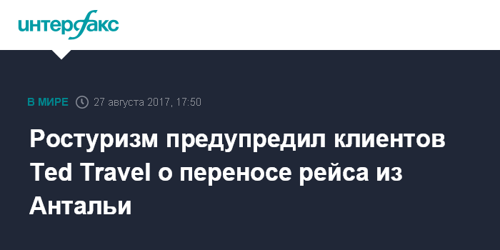 Ростуризм предупредил клиентов Ted Travel о переносе рейса из Антальи