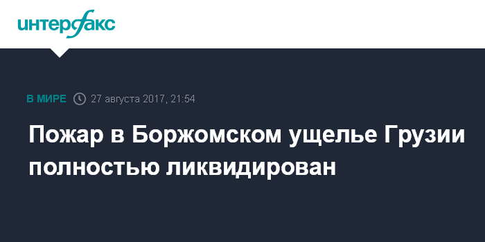 Москва. 27 августа. INTERFAX.RU - Министр внутренних дел Грузии Георгий Мгебришвили заявил, что пожар в Боржомском ущелье ликвидирован полностью.