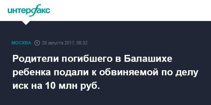 Родители погибшего в Балашихе ребенка подали к обвиняемой по делу иск на 10 млн руб.