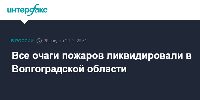 Москва. 28 августа. INTERFAX.RU - Все очаги природных пожаров ликвидированы в Волгоградской области, сообщили в понедельник в пресс-службе МЧС России.