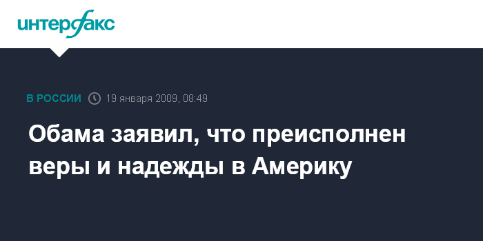 Москва. 19 января. INTERFAX.RU - Избранный президентом США Барак Обама обратился в воскресенье со ступеней мемориала Линкольна в Вашингтоне к многотысячной толпе с прочувственной речью.