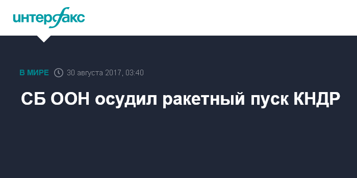 Москва. 30 августа. INTERFAX.RU - Совет Безопасности ООН осудил очередной пуск баллистической ракеты КНДР и потребовал немедленно прекратить подобные действия.