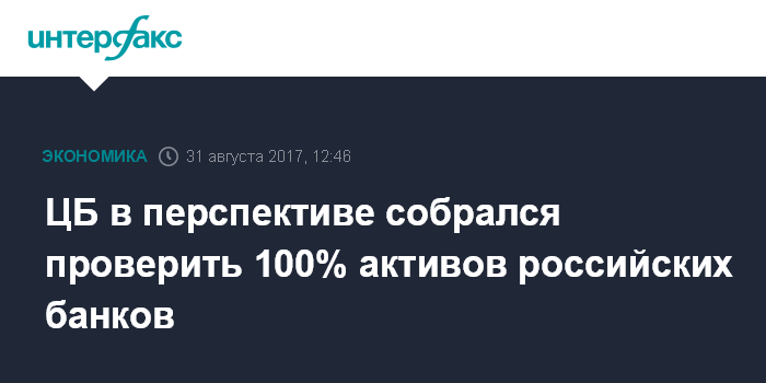 Москва. 31 августа. INTERFAX.RU - ЦБ РФ в перспективе хочет проверить 100% активов российских банков, рассказала в интервью агентству "Интерфакс" зампред Банка России Ольга Полякова.