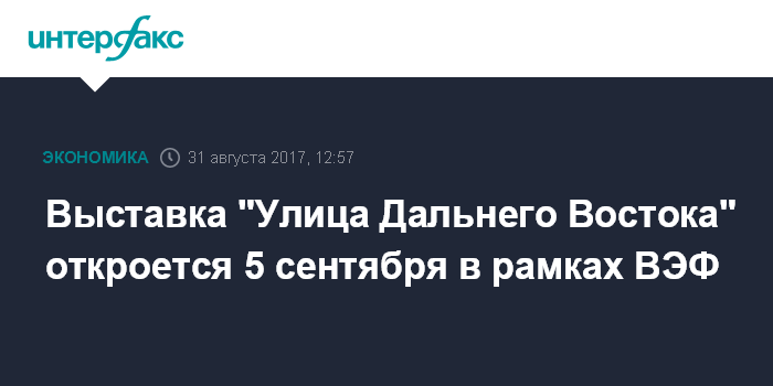 Выставка "Улица Дальнего Востока" откроется 5 сентября в рамках ВЭФ