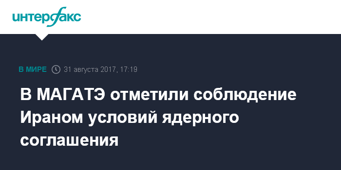Москва. 31 августа. INTERFAX.RU - Иран в прошедшие три месяца исправно выполнял требования по ядерной сделке страны, говорится в докладе МАГАТЭ, оказавшемся в распоряжении агентства EFE.