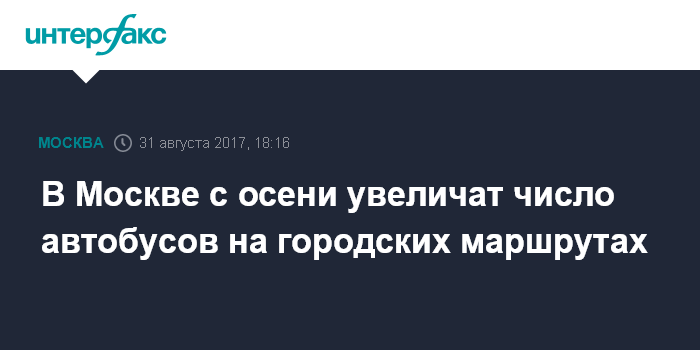 "С наступлением осени повышается потребность москвичей в регулярных поездках по городу. Как правило, количество пассажиров наземного общественного транспорта возрастает на 15-20% по сравнению с теплым временем года. Для качественного транспортного обслуживания жителей Мосгортранс увеличит выпуск более чем на 300 автобусов в первые дни сентября и продолжит наращивать количество транспорта в течение осенних месяцев", - цитирует пресс-служба ГУП "Мосгортранс" генерального директора предприятия Евгения Михайлова.