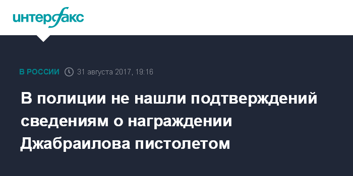 В полиции не нашли подтверждений сведениям о награждении Джабраилова пистолетом