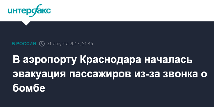 Москва. 31 августа. INTERFAX.RU - Эвакуация пассажиров проводится в аэропорту Краснодара в четверг вечером после анонимного сообщения о возможном минировании, сообщили агентству "Интерфакс" в пресс-службе компании "Базел Аэро".