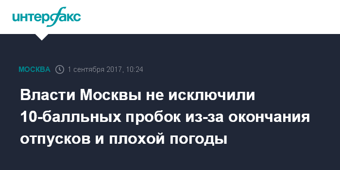 Власти Москвы не исключили 10-балльных пробок из-за окончания отпусков и плохой погоды