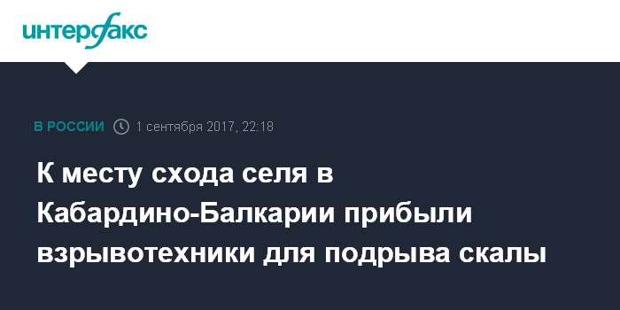 Москва. 1 сентября. INTERFAX.RU - Решение о подрыве скалы для ликвидации последствий схода селевого потока в Кабардино-Балкарии будет принято утром 2 сентября, этим займутся специалисты МЧС, заявил глава КБР Юрий Коков.