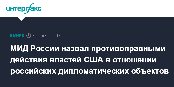 МИД России назвал противоправными действия властей США в отношении российских дипломатических объектов