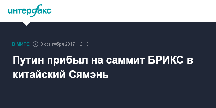 Путин прибыл на саммит БРИКС в китайский Сямэнь
