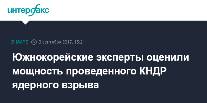 Южнокорейские эксперты оценили мощность проведенного КНДР ядерного взрыва