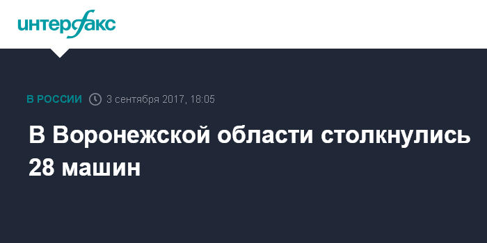Москва. 3 сентября. INTERFAX.RU - 28 машин столкнулись в Бобровском районе Воронежской области в воскресенье, сообщили "Интерфаксу" в пресс-службе ГИБДД по региону.