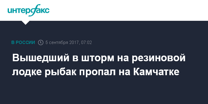 Москва. 5 сентября. INTERFAX.RU - Рыбака-любителя, пропавшего в море во время шторма в понедельник, ищут в акватории Петропавловска-Камчатского и на побережье, сообщает во вторник пресс-служба ГУ МЧС по Камчатскому краю.