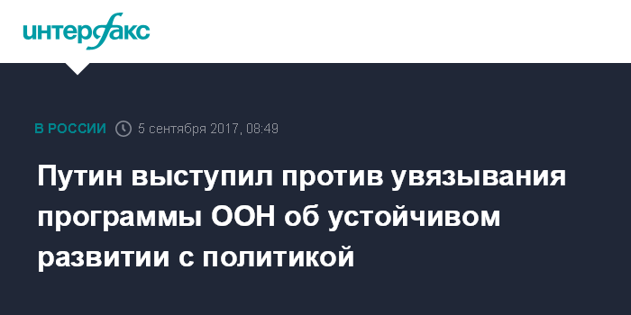 Путин выступил против увязывания программы ООН об устойчивом развитии с политикой