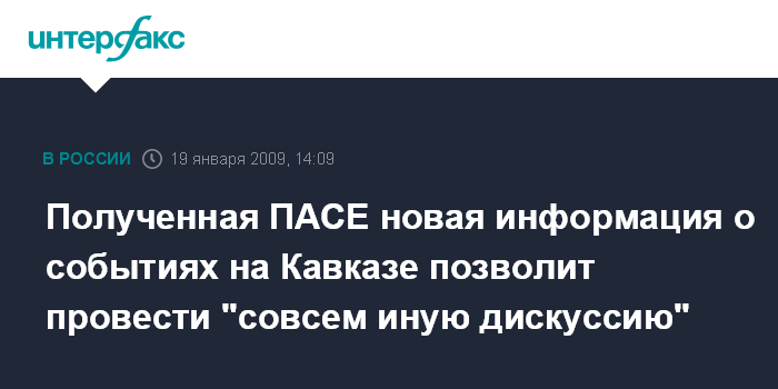 Полученная ПАСЕ новая информация о событиях на Кавказе позволит провести "совсем иную дискуссию"