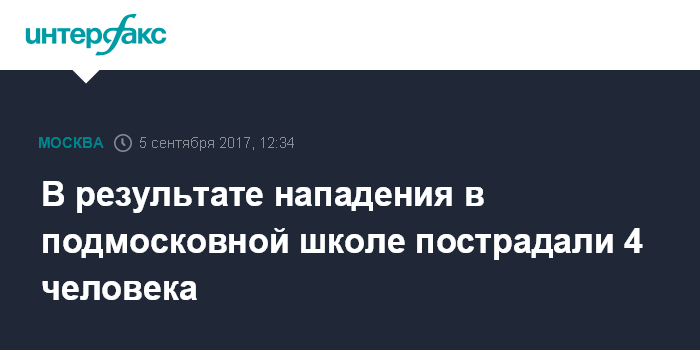 Москва. 5 сентября. INTERFAX.RU - В результате нападения ученика в школе в подмосковной Ивантеевке пострадали четыре человека, в том числе трое детей, сообщили в министерстве здравоохранения Московской области.