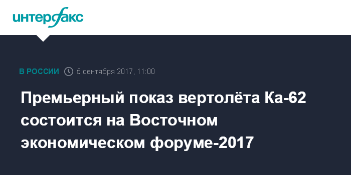 Премьерный показ вертолёта Ка-62 состоится на Восточном экономическом форуме-2017