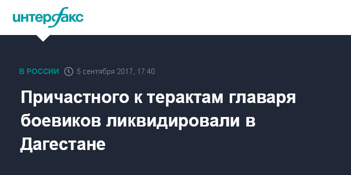 Москва. 5 сентября. INTERFAX.RU - Национальный антитеррористический комитет (НАК) сообщил о ликвидации одного из лидеров бандформирований в Дагестане.