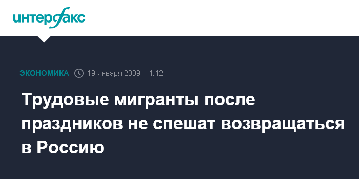 Москва. 19 января. INTERFAX.RU - В Федеральной миграционной службе (ФМС) не отмечают резкого притока иностранных трудовых мигрантов в Россию после новогодних праздников.
