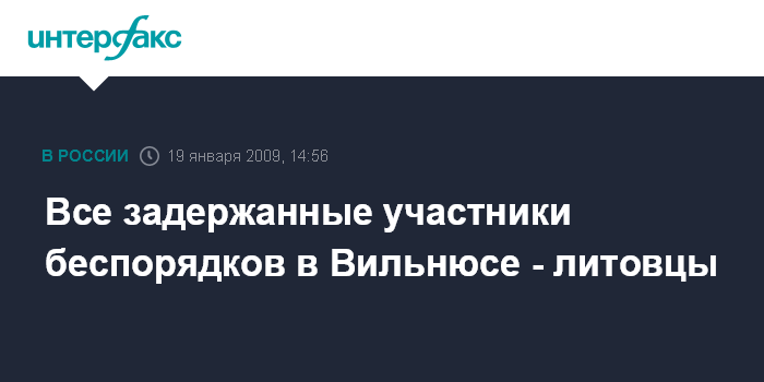 Вильнюс. 19 января. INTERFAX.RU - Все 32 задержанных в пятницу по подозрению в участии в беспорядках у здания парламента - граждане Литвы, заявил журналистам генкомиссар полиции Литвы Визгирдас Тяличенас