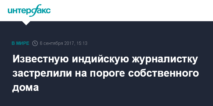 Москва. 6 сентября. INTERFAX.RU - Известную индийскую журналистку Гаури Ланкеш застрелили у дверей ее собственного дома в городе Бангалоре в штате Карнатака, сообщает в среду BBC News