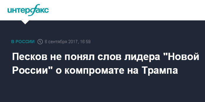 Песков не понял слов лидера "Новой России" о компромате на Трампа