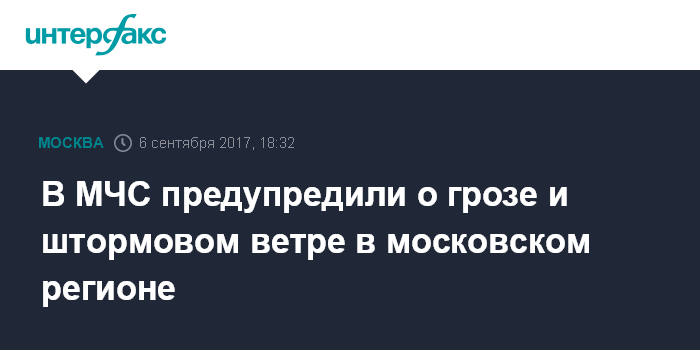 Москва. 6 сентября. INTERFAX.RU - В Москве и Подмосковье в ближайшее время ожидается гроза и штормовой ветер до 17 м/с, сообщило в среду Главное управление МЧС России по столице.