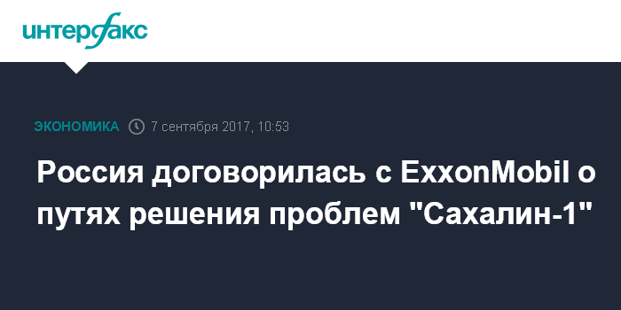 Москва. 7 сентября. INTERFAX.RU - Российские власти договорились с ExxonMobil о путях решения проблем проекта "Сахалин-1", несмотря на ухудшение внешнеполитических отношений с США, заявил президент РФ Владимир Путин.