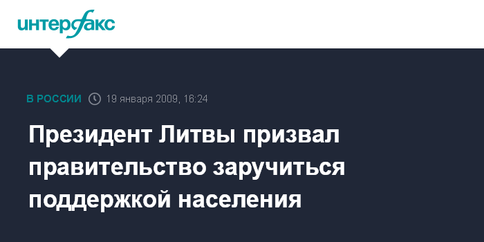 Вильнюс. 19 января. INTERFAX.RU - Президент Литвы Валдас Адамкус (Valdas Adamkus) призвал правительство страны неотложно предпринять все необходимые меры для снижения напряженности в обществе и избежания возможной волны забастовок.