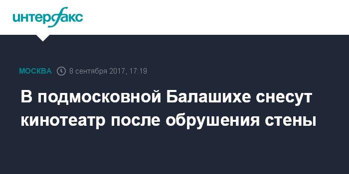 В подмосковной Балашихе снесут кинотеатр после обрушения стены