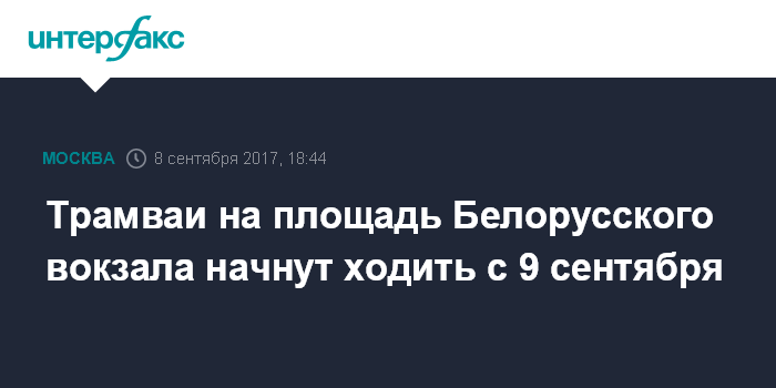 Москва. 8 сентября. INTERFAX.RU - Трамваи на площадь Тверская Застава к Белорусскому вокзалу начнут ходить со Дня города, 9 сентября. Об этом сообщили "Интерфаксу" в пресс-службе ГУП "Мосгортранс" в пятницу.