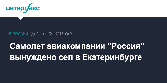 Самолет авиакомпании "Россия" вынуждено сел в Екатеринбурге
