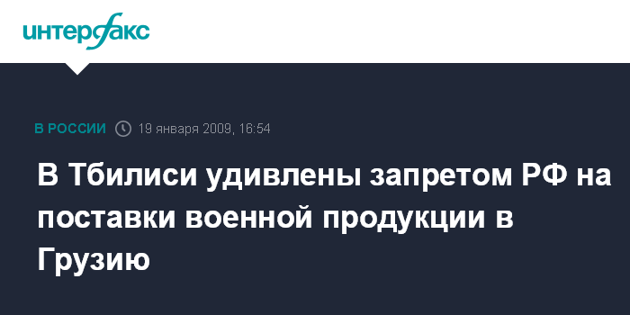 В Тбилиси удивлены запретом РФ на поставки военной продукции в Грузию