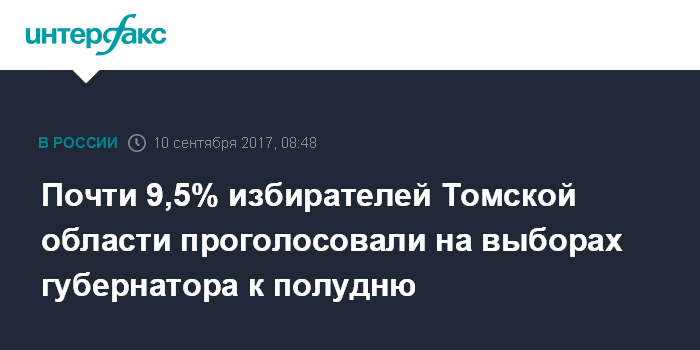 Почти 9,5% избирателей Томской области проголосовали на выборах губернатора к полудню