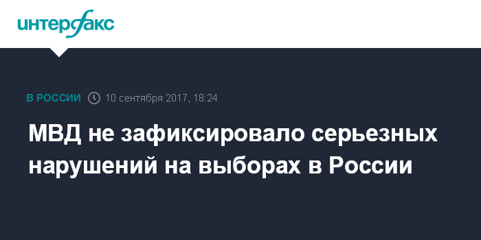 Москва. 10 сентября. INTERFAX.RU - МВД России не зафиксировало нарушений, которые могли бы повлиять на итоги выборов в воскресенье, заявил замглавы ведомства Александр Горовой.