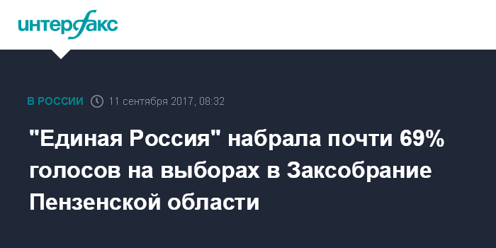 "Единая Россия" набрала почти 69% голосов на выборах в Заксобрание Пензенской области
