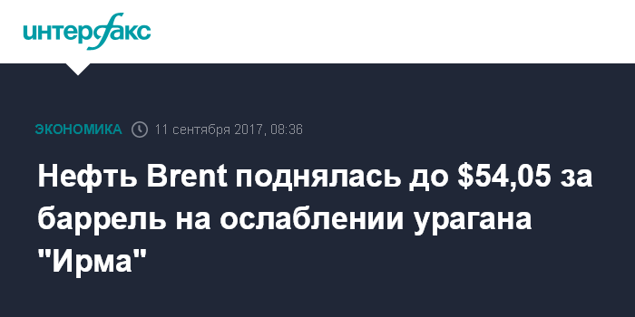 Нефть Brent поднялась до $54,05 за баррель на ослаблении урагана "Ирма"
