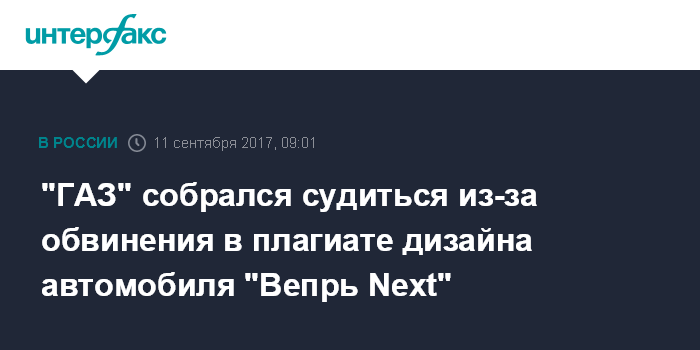 Москва. 11 сентября. INTERFAX.RU - Горьковский автозавод (Нижний Новгород, входит в группу "ГАЗ" ) рассматривает возможность подачи иска на жителя Германии, обвинившего "ГАЗ" в плагиате дизайна автомобиля "Вепрь Next", сообщает пресс-служба группы.