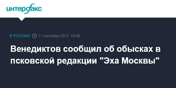Венедиктов сообщил об обысках в псковской редакции "Эха Москвы"