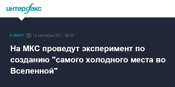 На МКС проведут эксперимент по созданию "самого холодного места во Вселенной"